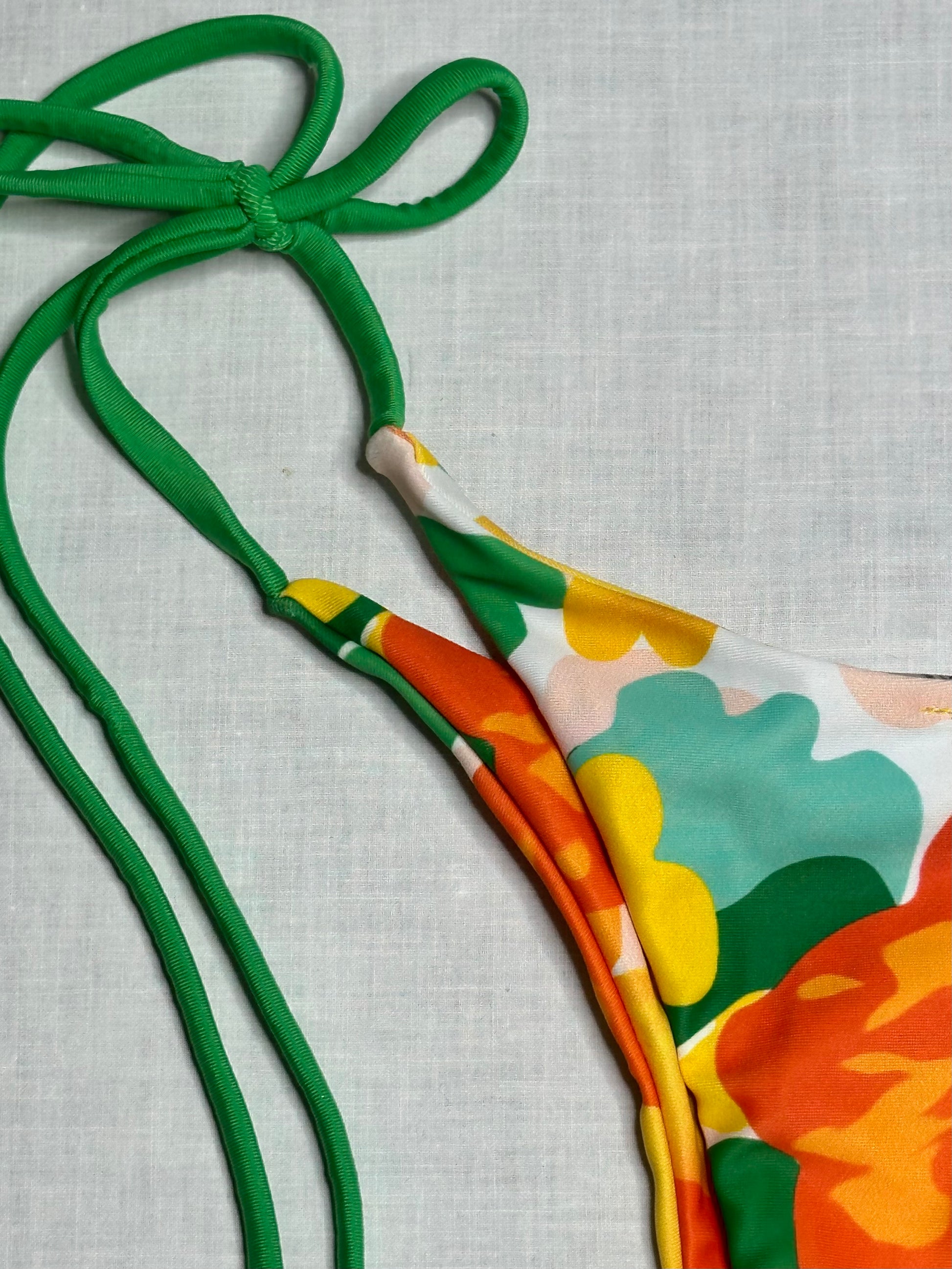 The Maratea bottoms are cheeky, colorful and fun! They have long straps on the sides to tie and adjust for a perfect fit. The bottoms are double lined.